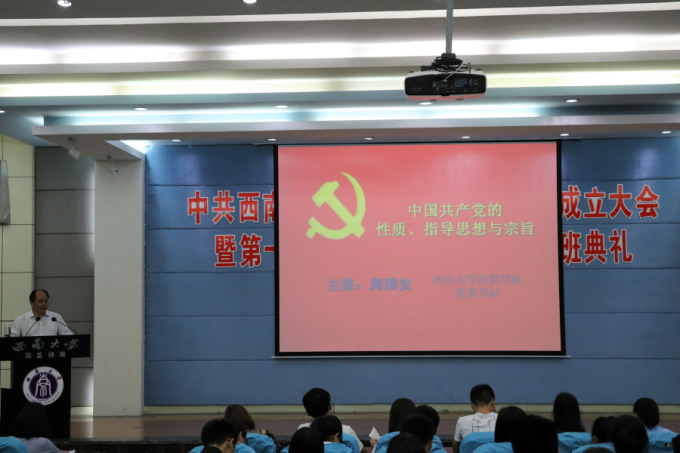 大会结束后,周国安书记为学员们讲授了党课培训第一课——《中国共产党的性质、指导思想与宗旨》。