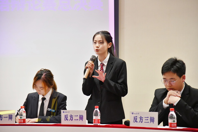 进入本次决赛的两支队伍分别是海尔姐妹队,深藏blue队。上述两支队伍围绕着“当代社会,我们更应秉持浪漫主义还是现实主义”展开辩论,正方表示“开宗明义,正本清源。浪漫主义是基于实际显示,在理性下更加注重主观感受与情感表达。以感性为主要的驱动力,去抒发积极向上的人生态度。”;反方则认为“现实主义是找到一个合适的自我定位,将社会需要放在第一位,再对标自己的条件,最后找到自己所喜欢的事情。”通过双方立论、小结、自由辩论等环节使在场观众大饱眼福。