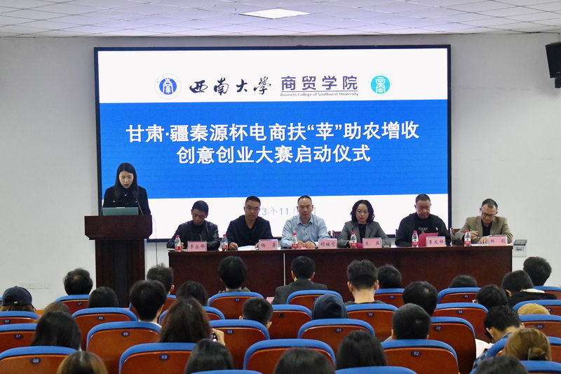 为深入贯彻落实国务院关于提升国家乡村振兴,重点帮扶县产业发展水平,切实巩固拓展脱贫攻坚成果的指导意见精神,提高我院学生电子商务创意创业水平和就业能力,11月3日上午九点,yl6809永利集团于9601报告厅举行甘肃·疆秦源杯电商扶“苹”助农增收创意创业大赛启动仪式。