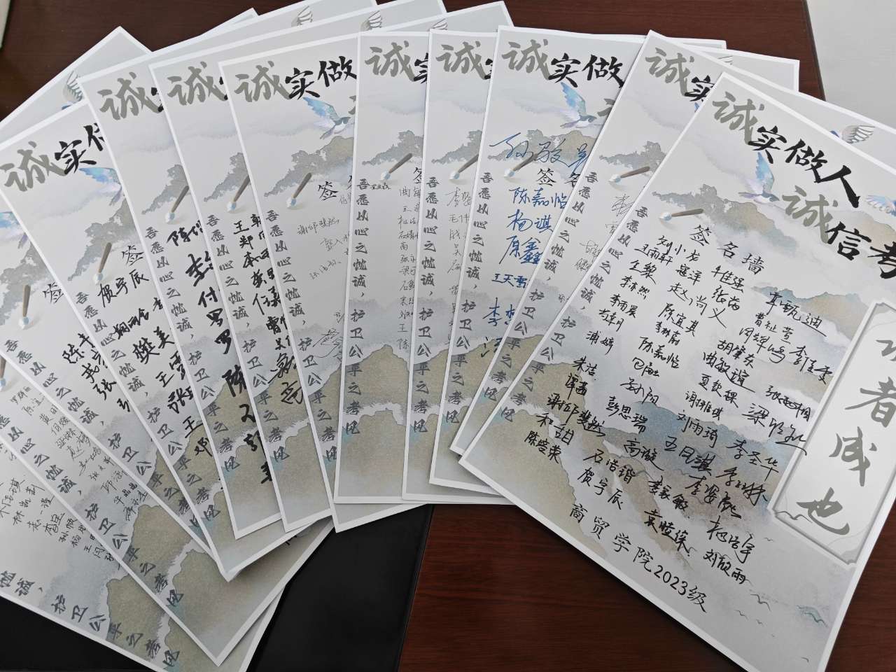 深入推进学院“三全育人”工作,严肃考风考纪,教育广大新生诚信应考、诚实做人,以端正态度迎接大学第一次期末考试,近日商贸学院2023级全体新生中开展“启航”系列之诚信应考主题教育活动。